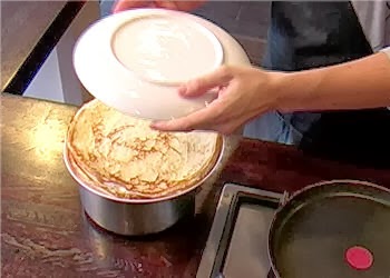 Placez une assiette sur une casserole d'eau bouillante hors du feu. Empilez-y ensuite les crêpes, en les recouvrant d'une seconde assiette ou de papier d'aluminium.