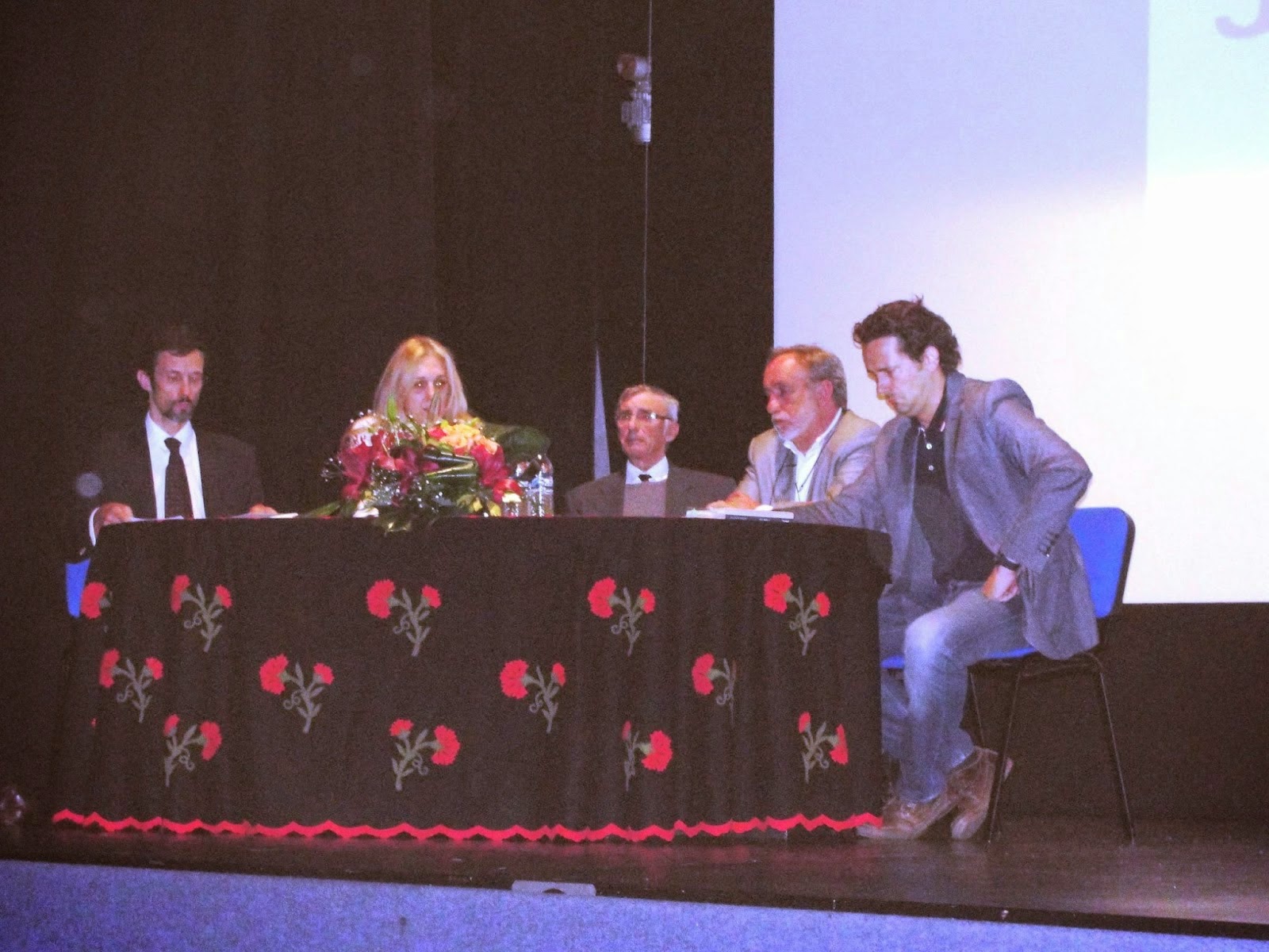 Na mesa da sessão, realizada no Cine Teatro, perante numeroso público, a presidente da Câmara, Idalina Trindade, o presidente da Assembleia Municipal, João Santana, o pai do homenageado, professor João Maria, o irmão do poeta, Filipe Carita, e António Carlos Cortez, professor de literatura e amigo de Fernando Carita.