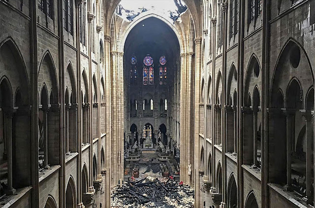 20 km de madeira e 1 200 carvalhos cortados para reconstruir a «forêt», a estrutura de madeira do telhado.